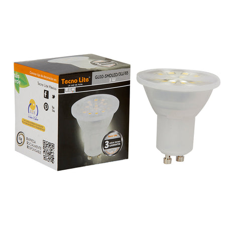 KIT DE 37 PIEZAS DE FOCO LED TECNOLITE TIPO MR16 3W LUZ SUAVE CALIDA BASE GX5.3 MR16-SMDLED/3W/30
