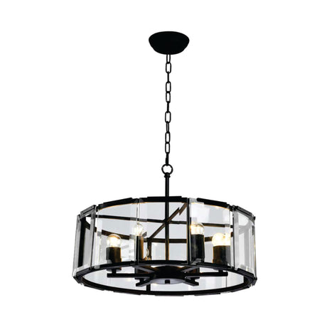 LUMINARIO COLGANTE ESTILO OVAL 4XE15 C/ CRISTAL HIERRO COLOR NEGRO *** EXHIBIDO ***