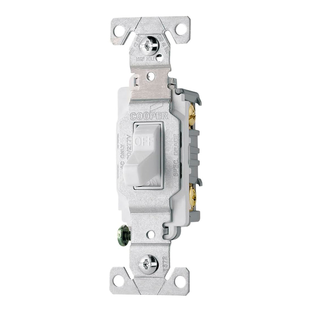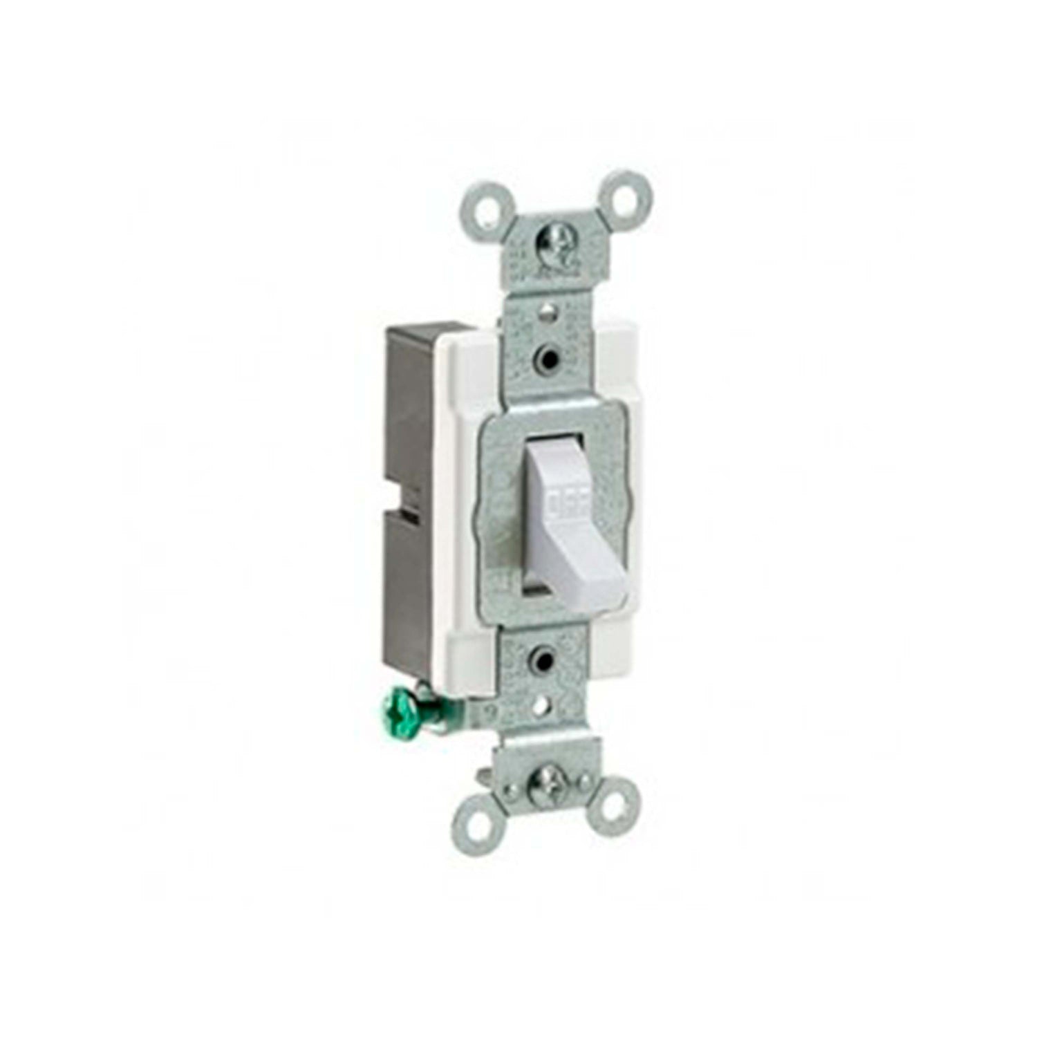 Interruptor de palanca de grado comercial, color blanco, de 15A, para 120 o 277V, modelo CS115W. Ideal para aplicaciones residenciales y comerciales ligeras. Ofrece una solucion confiable y duradera para el control de circuitos electricos