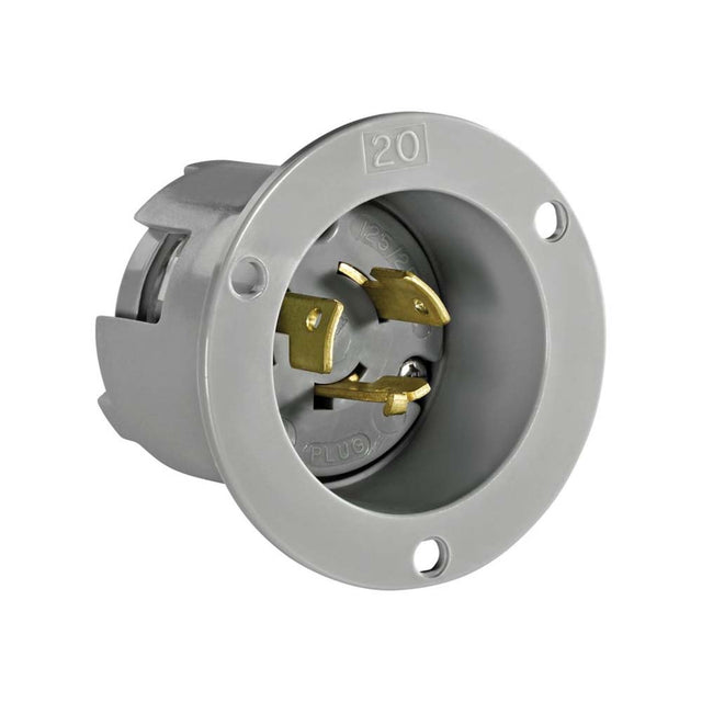 Es un conector industrial de 20A y 125/250V, disenado para aplicaciones exigentes. Fabricada en nylon gris, ofrece durabilidad y resistencia en entornos adversos. Admite cables de calibre 14-8 AWG y soporta temperaturas de -40 a 60 grados C.