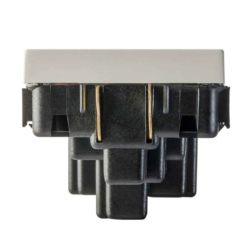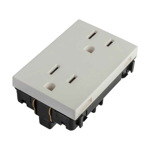 Contacto Duplex, cuenta con dos polos y conexion a tierra (2P+T). Util para conectar aparato electronicos a corrientes electricas, es compatible con placas y mecanismos de la linea Zenir