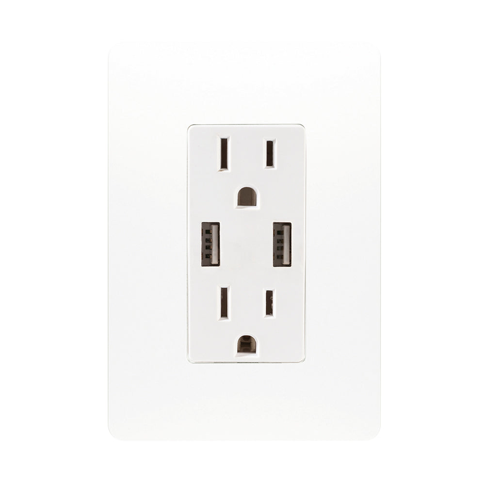 Carga tus dispositivos facilmente con este practico contacto duplex que incluye 2 puertos USB. Ideal para tu oficina u hogar. Diseno moderno y compacto. Chasis blanco resistente.