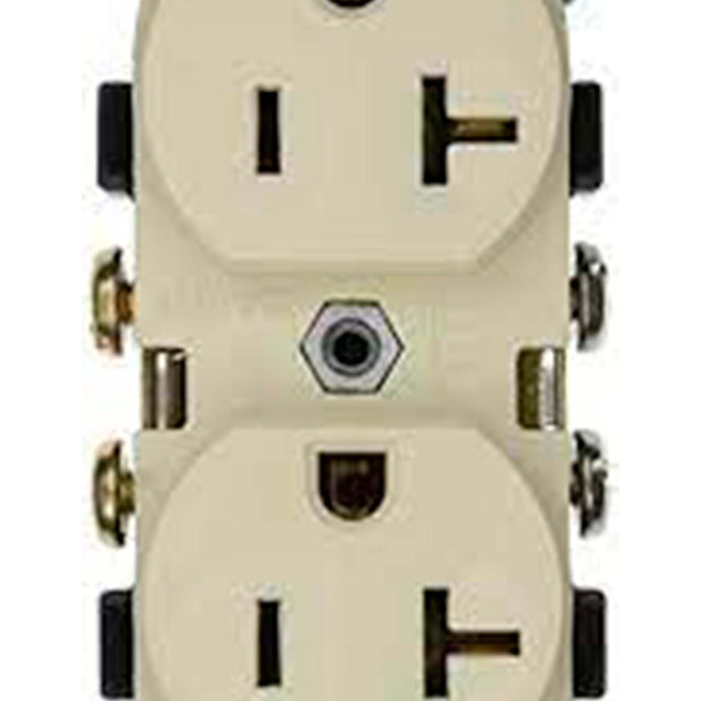 Contacto duplex comercial 2 polos 3 hilos 20 A 125 V en color Marfil Leviton
