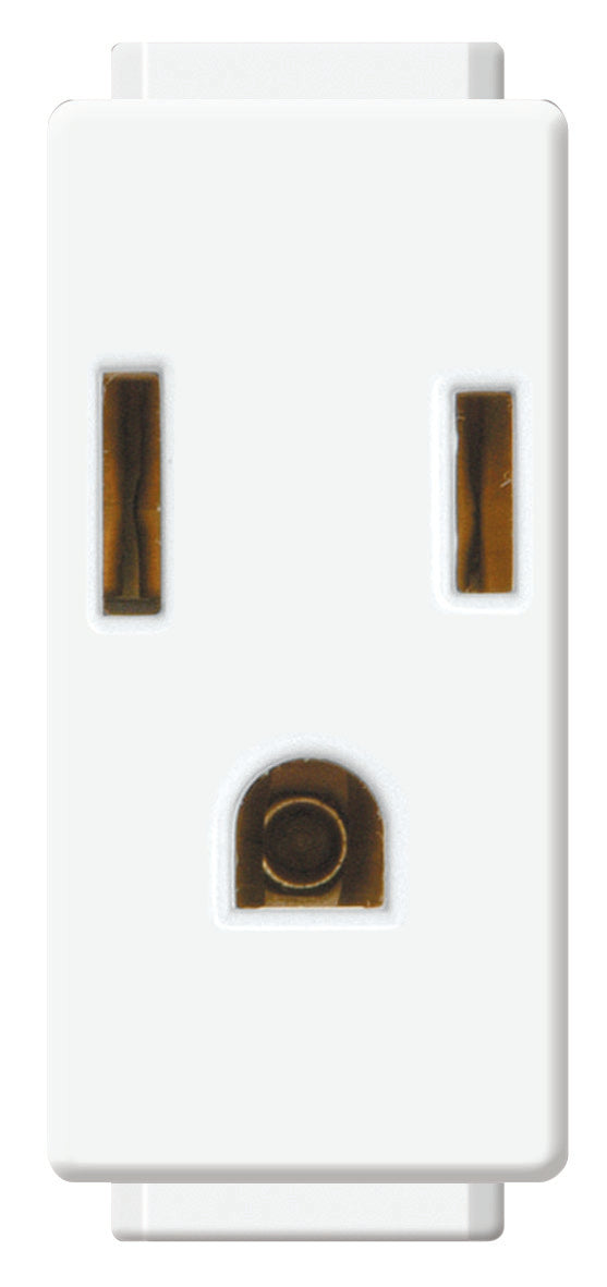 El contacto (tomacorriente) Modus E2023BN de BTICINO es un modulo individual polarizado y aterrizado con capacidad de 15A a 127V. Es la version en color Blanco del modelo Modus, perfecto para combinar con placas blancas. Sus bornes de conexion protegidos y partes metalicas de laton aseguran una instalacion electrica segura y duradera. Es un tomacorriente de uso general de 1 modulo, disenado para el estandar de clavija americano.