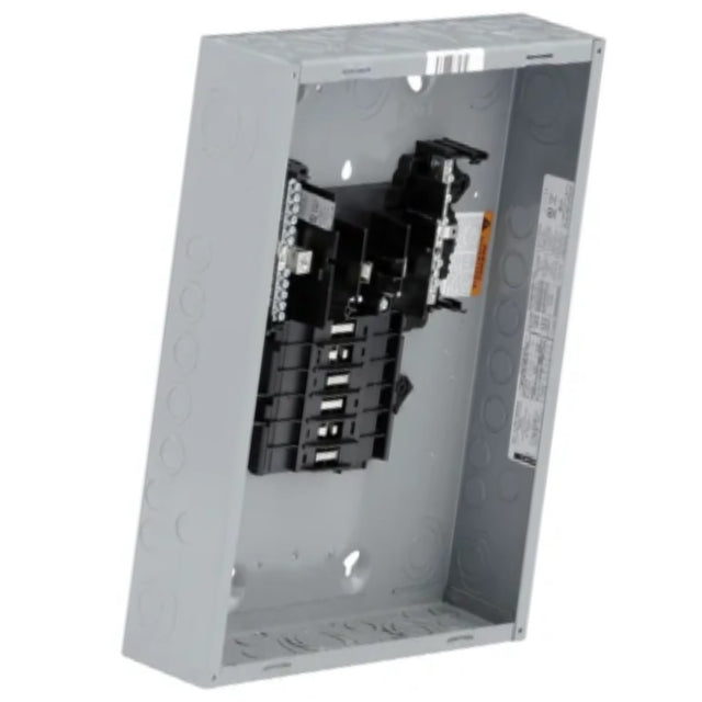 Centro de carga tipo QO de Square D, 3 fases, 12 polos y 125A con zapatas principales fijas y barra a tierra. Carcasa NEMA 1 para uso interior, ideal para distribucion electrica en instalaciones comerciales e industriales.