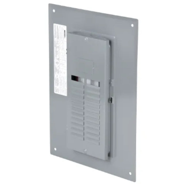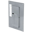 Frente para centro de carga tipo empotrar QO de 24 espacios, fabricado en lamina de acero esmaltado gris. Incluye cubierta lisa con apertura manual y compatibilidad para uso interior en sistemas monofasicos o trifasicos.