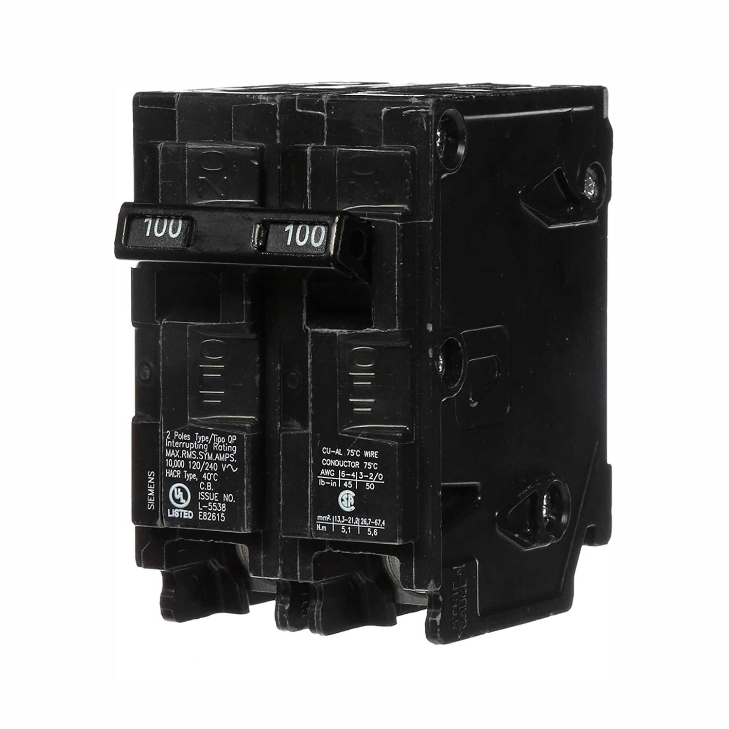 El interruptor termomagnetico 2S739 (modelo Q2100) de Siemens es un dispositivo de proteccion tipo QP (enchufable) para centros de carga compatibles. Es de 2 polos, con una capacidad de 100 Amperes y una capacidad interruptiva de 10 kA. Ideal para circuitos bifasicos de alta demanda.