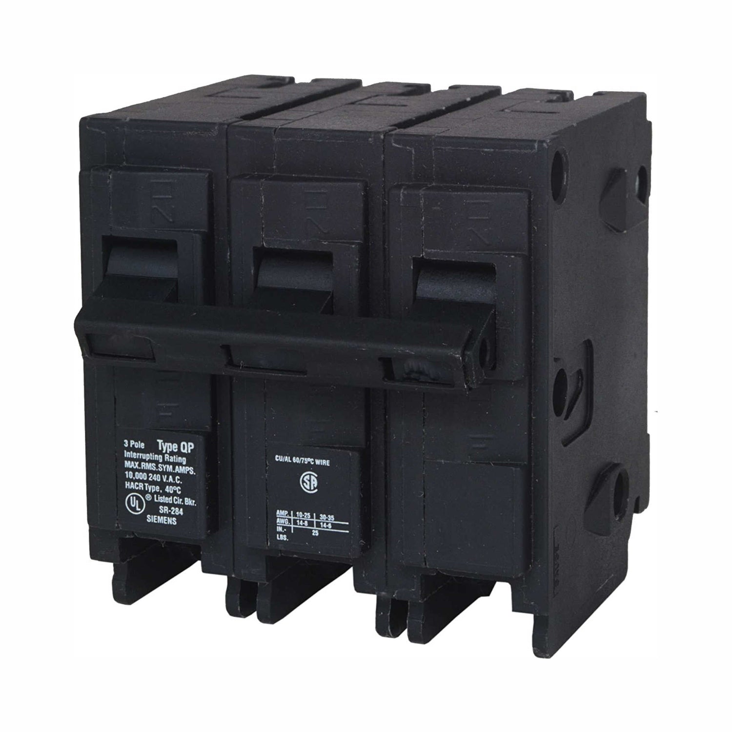 El interruptor termomagnetico 2S740 (modelo Q315) de Siemens es un dispositivo de proteccion tipo QP (enchufable). Es de 3 polos, con una capacidad de 15 Amperes y una capacidad interruptiva de 10 kA. Diseñado para la proteccion de circuitos trifasicos de baja carga en centros de carga QP.