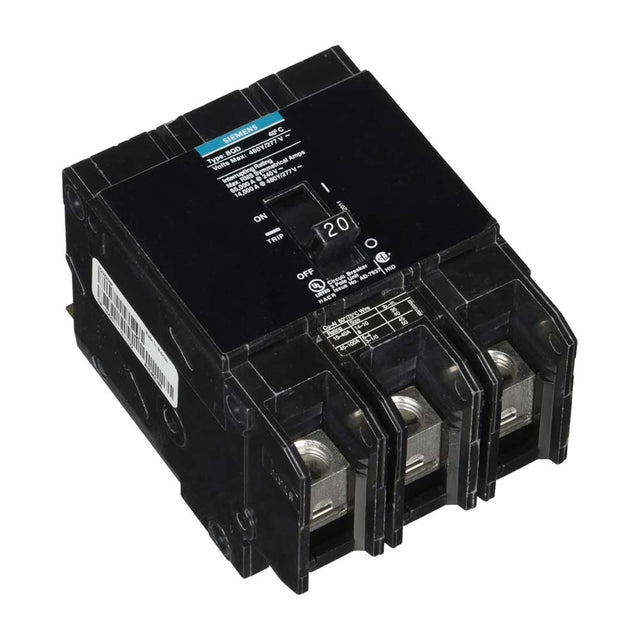 El interruptor termomagnetico Siemens BQD320 es un dispositivo de proteccion atornillable (bolt-on) para tableros de distribucion. Este modelo tripolar de 20A esta clasificado para 480/277V y ofrece una capacidad de interrupcion de 10kA. Su diseno compacto y confiable lo hace ideal para sistemas de iluminacion y fuerza en edificios comerciales.