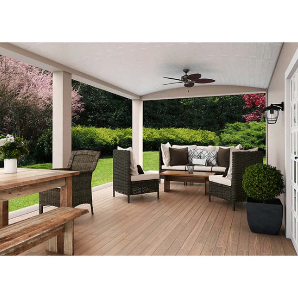 - Ubicacion: exterior cubierto / interior humedo (damp-rated), ideal para patios techados, baños, terrazas