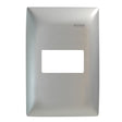 Enmarca un solo dispositivo con la elegancia del acabado plata. Esta placa de 1 modulo de la serie 100 Colores de Royer, disenada para montaje horizontal, es ideal para dar un toque moderno y metalico a tus apagadores y contactos, perfecta para cocinas y oficinas.