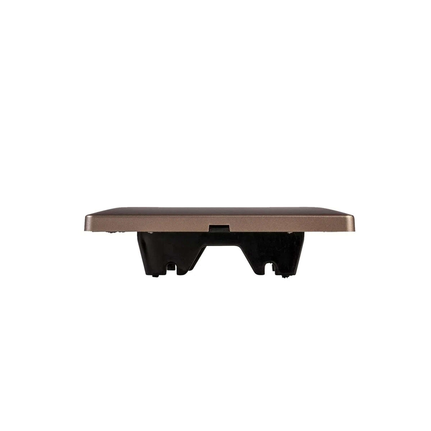 Fabricada en Lexan (policarbonato) de alta resistencia, esta placa de 3 modulos de la serie Alpha de Estevez ofrece una durabilidad superior. Su elegante acabado en champagne mate aporta un toque de sofisticacion y calidez a cualquier decoracion.