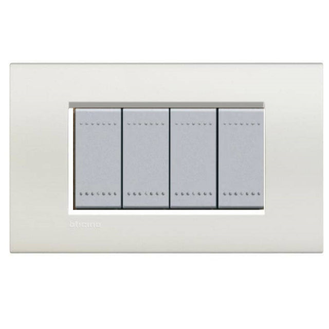 Placa rectangular decorativa de 4 modulos color blanco Bticino