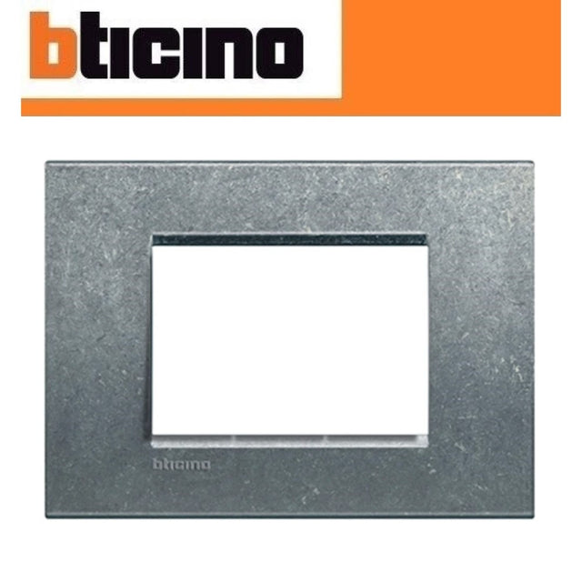 Placa rectangular de 3 modulos metalica color gris LNA4803NA Bticino.