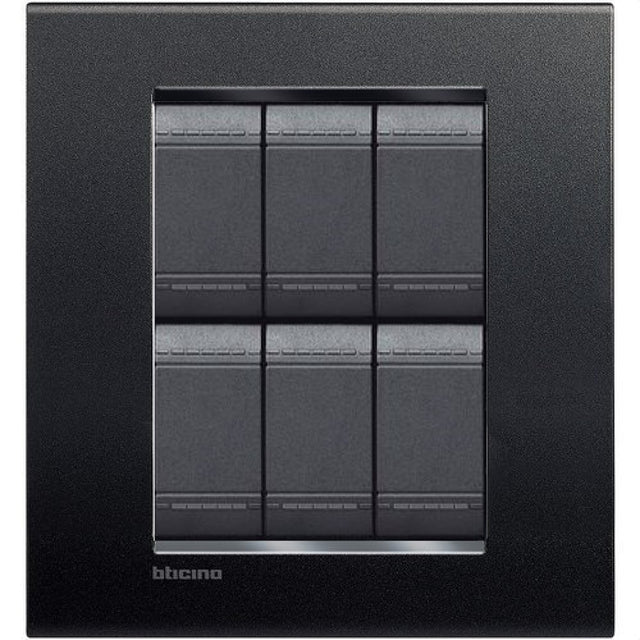 Placa Rectangular Color Negro Antracita 3+3 Mod. LNA4826AR Living Y Light Bticino