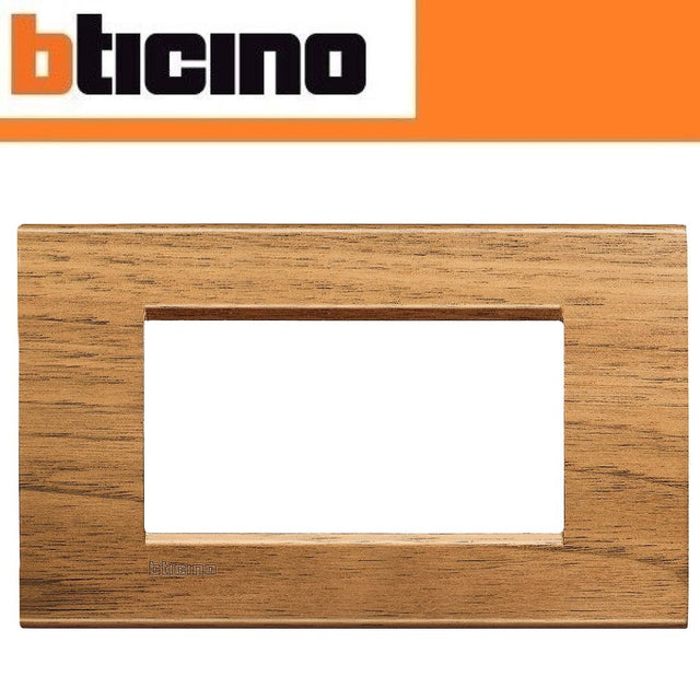 Placa rectangular de 4 modulos de madera color nogal LNA4804LNC Bticino.