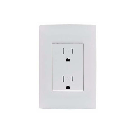TOMACORRIENTE DUPLEX POLARIZADA Y ATERRIZADA 2P+T 15A/127V. CON PLACA BLANCO