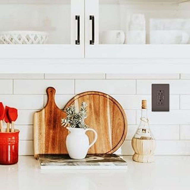 - Receptaculo / tomacorriente de 15 A y 125 V, alimentacion transversal de 20 A, ICFT de autoverificacion Smart lock delgado, monocromatico, cableado posterior y lateral, placa frontal/placa de pared de nylon y clip de puesta a tierra automatico incluidos - Negro