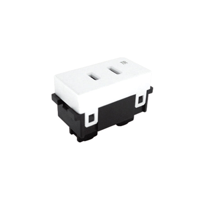 Este receptaculo sencillo de la serie 100 de Royer ofrece una conexion polarizada de 2 polos para aparatos que no requieren tierra fisica. Es un componente basico y confiable para instalaciones electricas residenciales, en un limpio acabado blanco.