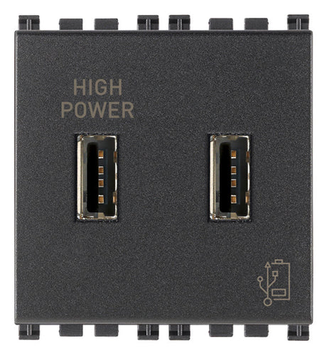 UNIDAD ALIMENTACION USB 5V. 2.1A. 2 MOD. 120-230V. GRIS PLANA VIMAR