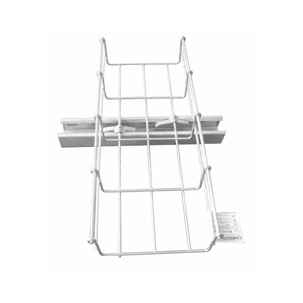 El clip de fijacion MG-51-099 de Charofil es el accesorio ideal para montar charolas de malla Charofil directamente sobre un perfil tipo Unicanal (strut channel). Su diseno permite una instalacion rapida y segura, sujetando firmemente la charola al perfil sin necesidad de perforaciones adicionales, lo que agiliza el tiempo de montaje de la canalizacion.