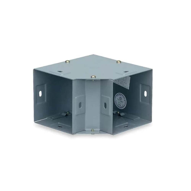 Codo de 90 grados modelo DC-100-90N de Macse para ducto cuadrado de 100x100 mm. Fabricado en acero con pintura epoxipoliester horneada color gris, ideal para cambios de direccion en instalaciones de canalizacion electrica.