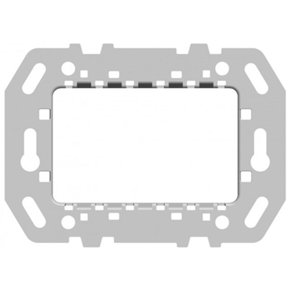 Esta plaqueta de la serie Unex de Niessen es el marco diseñado para alojar un chasis estandar de la misma linea, permitiendo la instalacion de un modulo (apagador, contacto, etc.). Es la base del sistema modular de Niessen, garantizando un ajuste perfecto y un acabado profesional.