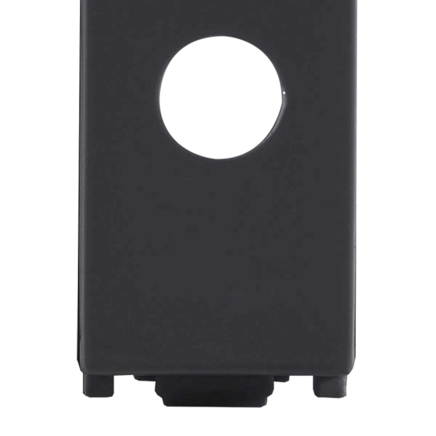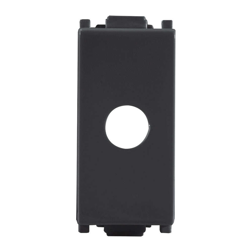El tapon de piloto de la serie Alpha de Estevez es un modulo ciego disenado para dispositivos que cuentan con una pequena luz piloto. Su diseno tiene una ventana que permite que la luz sea visible, manteniendo la estetica integrada de la linea Alpha en un elegante color negro.