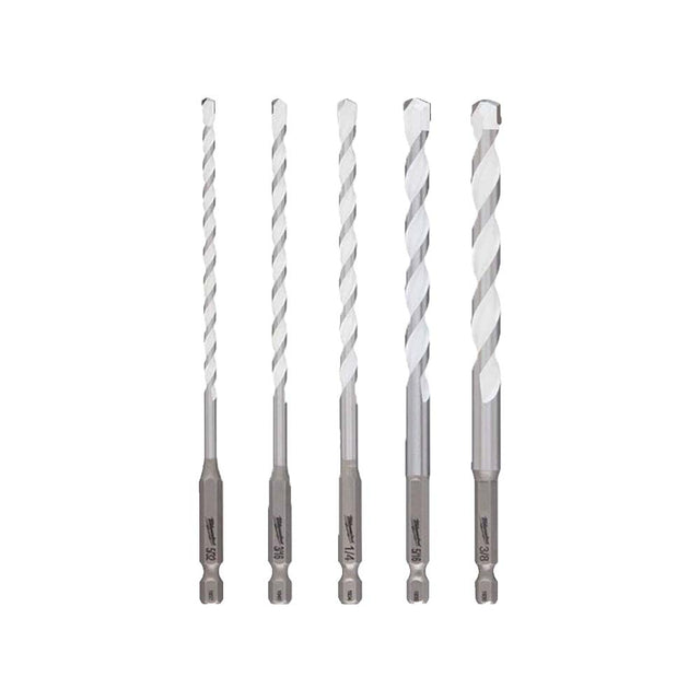 JUEGO DE BROCAS PARA MATERIALES MULTIPLES CONCRETO ACERO ALUMINIO AZULEJOS DE CERAMICA PANLES DE YESO MADERA Y PVC DE CARBURO SHOCKWAV **5 PIEZAS** MILWAUKEE