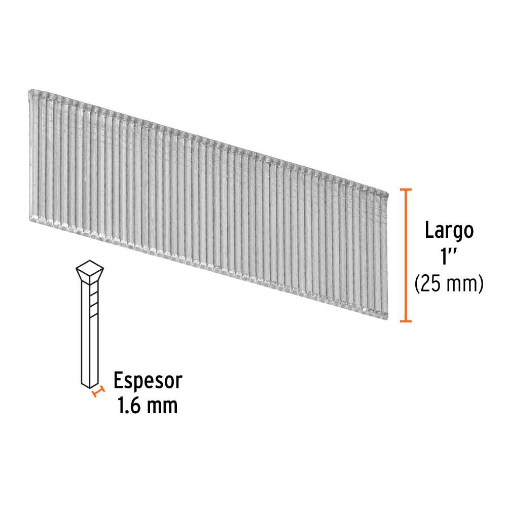Caja con 2500 Clavos Calibre 16, 25 mm Para CLNE-16