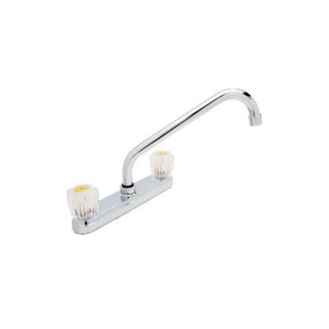 Mezcladora basica para fregadero de cocina con separacion de 8 pulgadas entre tomas. Fabricada en laton para mayor durabilidad. Incluye manerales de acrilico. Modelo C-328. Marca NACOBRE. Articulo de remate. **HAE (Hasta Agotar Existencias)**.