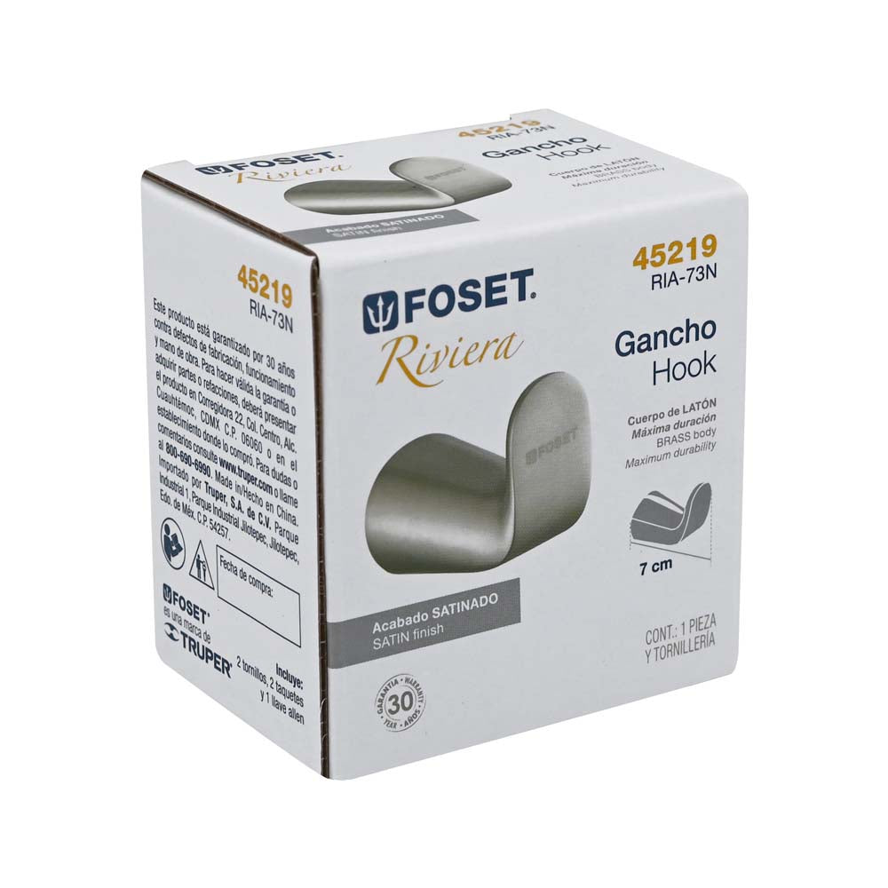 GANCHO SENCILLO SATINADO PARA TOALLA FOSET RIVIERA