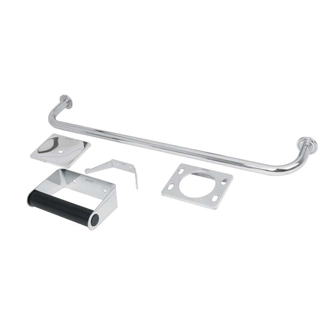 • Incluye: barra portatoallas, portarrollos, jabonera, portavaso cepillero, gancho doble
