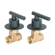 El Juego de llaves empotrables roscables de palanca negra, modelo 46779 de Truper Foset, ofrece una solucion duradera y funcional para sistemas de regadera. Fabricado con cuerpos de bronce que contienen 80% de cobre, garantiza una maxima duracion y resistencia a la corrosion. Los manerales tipo palanca y chapetones metalicos brindan un diseno moderno y facil manejo. Equipado con cartuchos ceramicos de 1/4 de vuelta, permite una apertura suave y precisa. Ideal para instalaciones en pared con conexiones de 1/2 - 14 NPT.