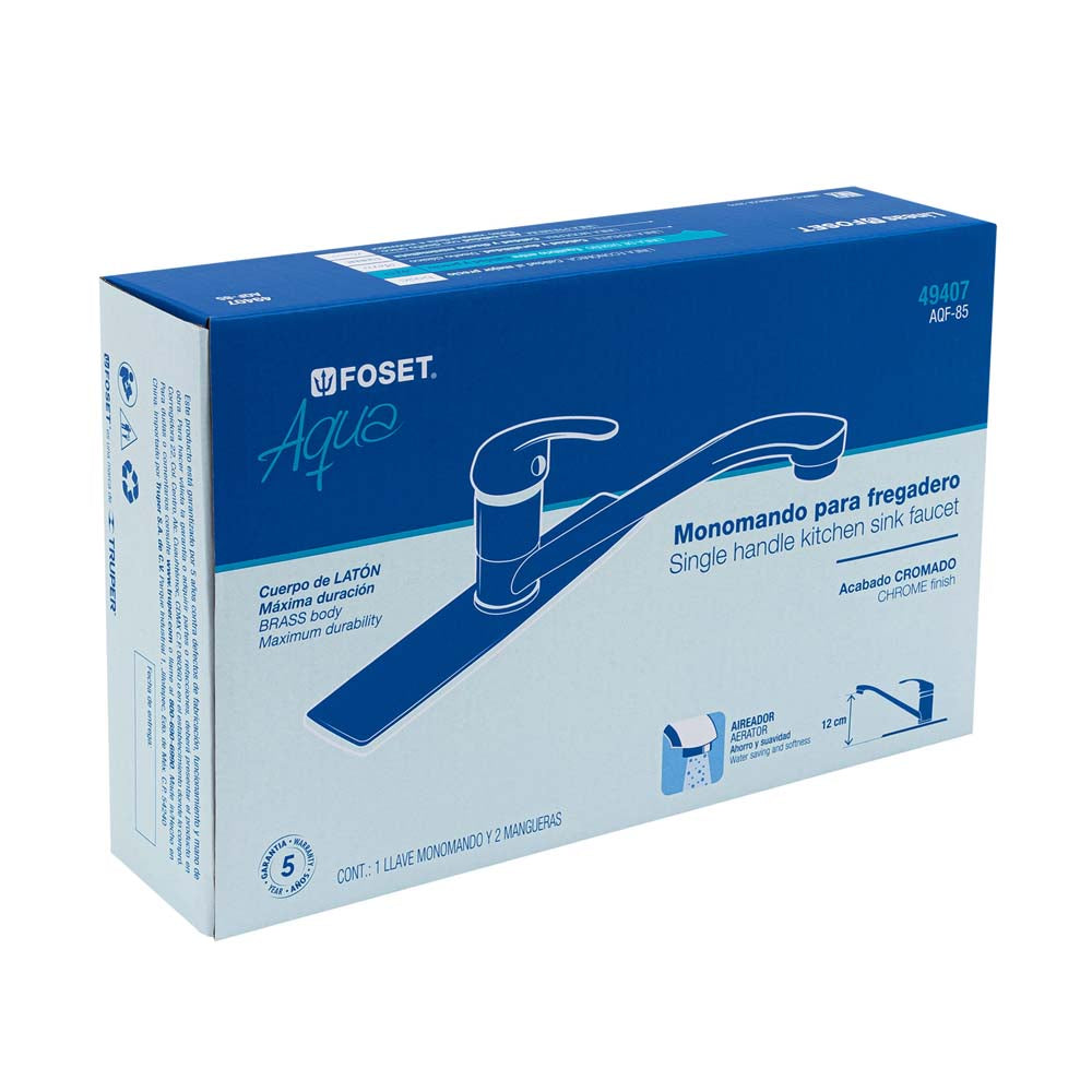Monomando para fregadero color cromo con cuello recto AQF-85 49407 Foset