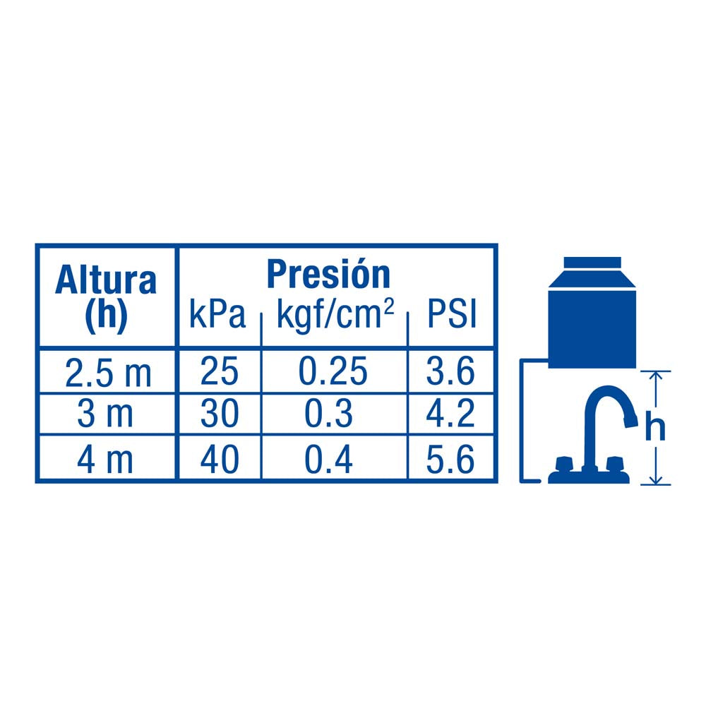 - Presion de trabajo: 0.25 a 1 kgf/cm cuadrados