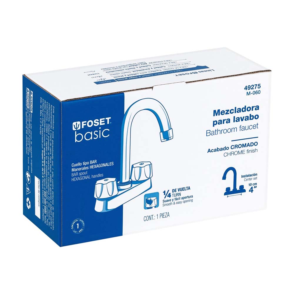 MEZCLADORA PARA LAVABO, MANERALES HEXAGONAL,CUELLO BAR,BASIC FOSET