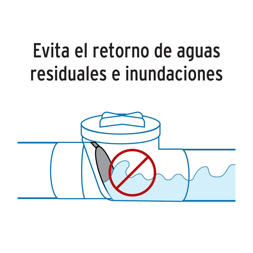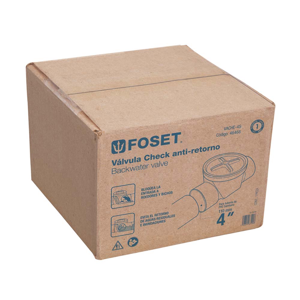 Valvula antirretorno de ABS de 4, FOSET. Fabricada en ABS. Tapa que facilita su limpieza y mantenimiento. Evita retorno de aguas residuales y pluviales en lineas sanitarias y alcantarillas. Para uso residencial y comercial, drenajes publicos y como caja de inspeccion sanitaria.