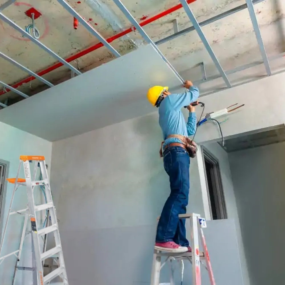 Escalera de tijera tipo LL, 4 escalones, con tacones plasticos antiderrapantes y separadores externos.