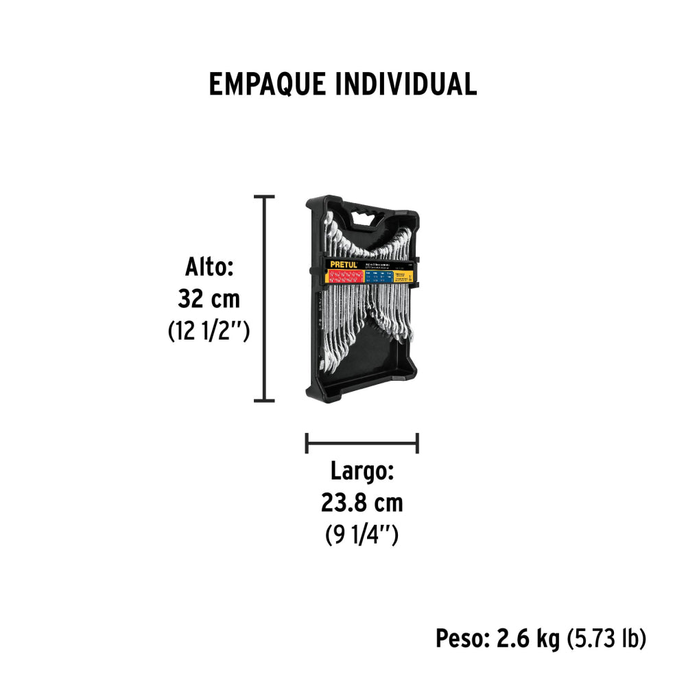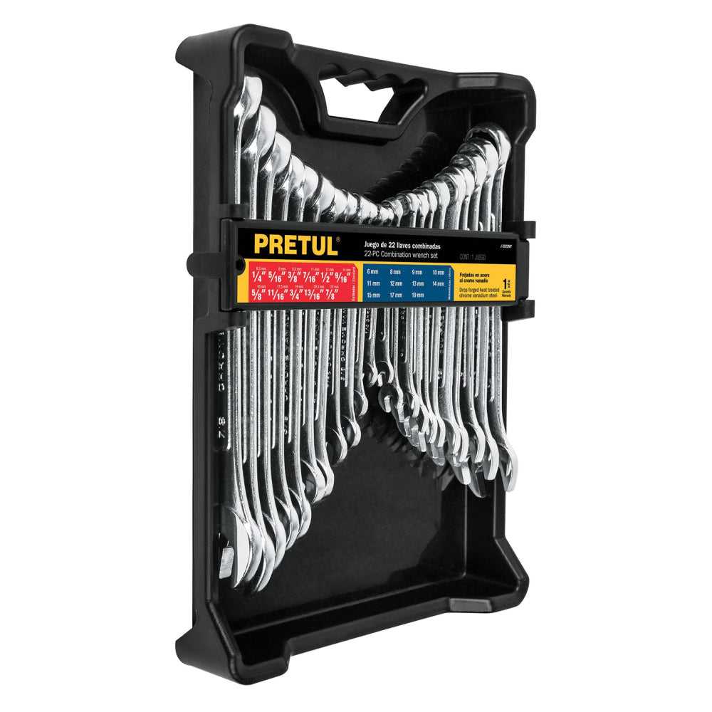 Juego de 22 llaves combinadas std y mm 22018 PRETUL.