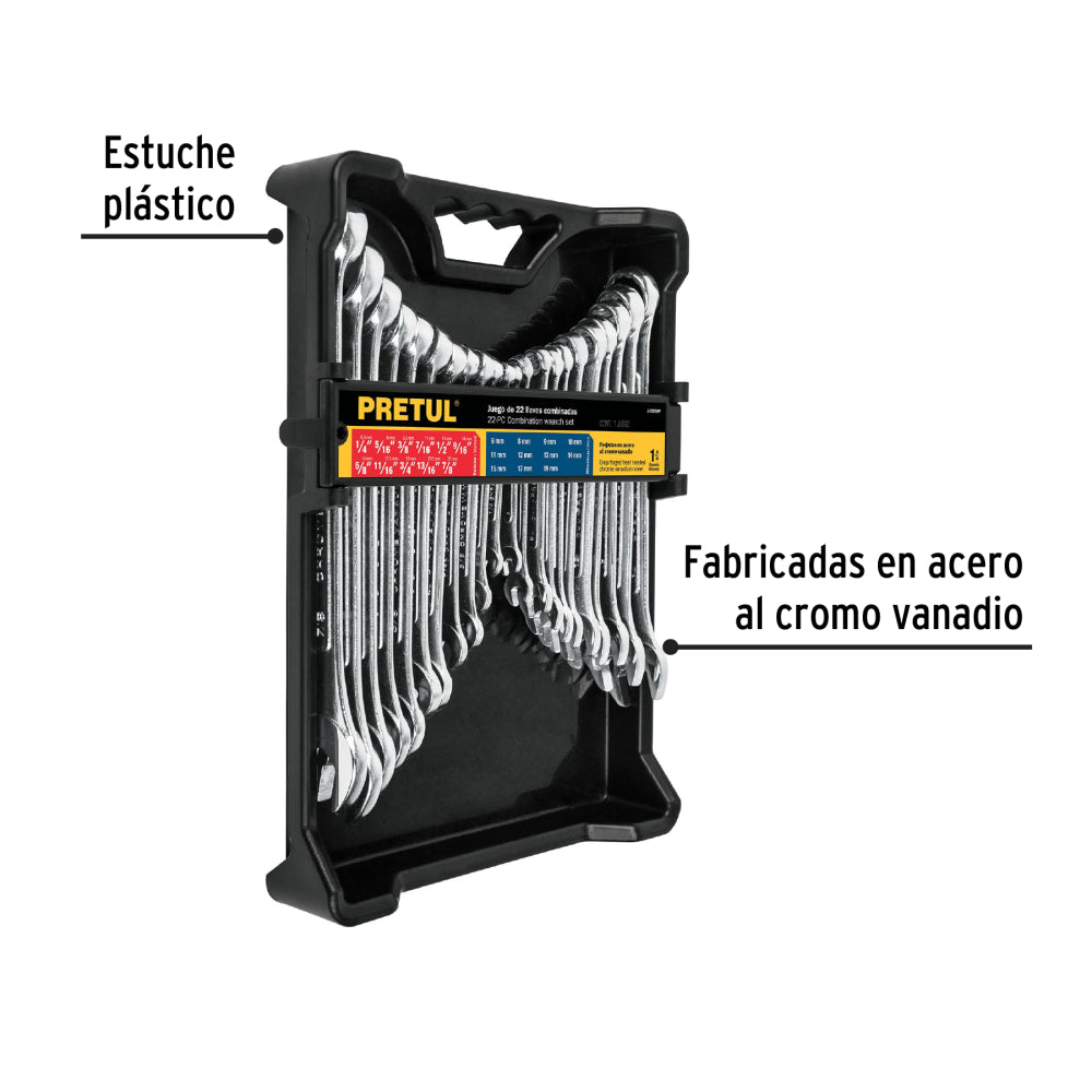 JUEGO DE 22 LLAVES COMBINADAS STD Y MM PRETUL