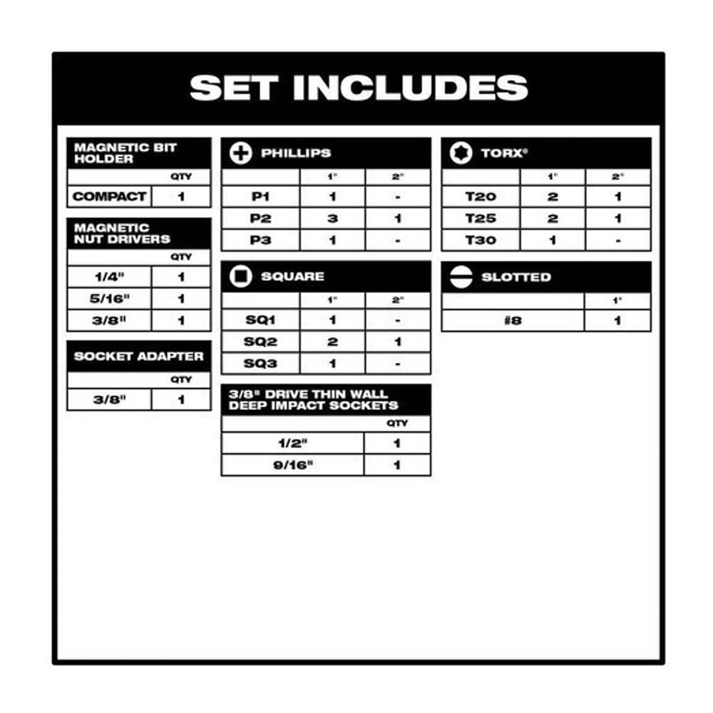 JUEGO DE PUNTAS PHILLIPS DE IMPACTO SHOCKWAVE PLANAS TORX CUADRADAS SOCKETS DADOS **26 PIEZAS** MILWAUKEE