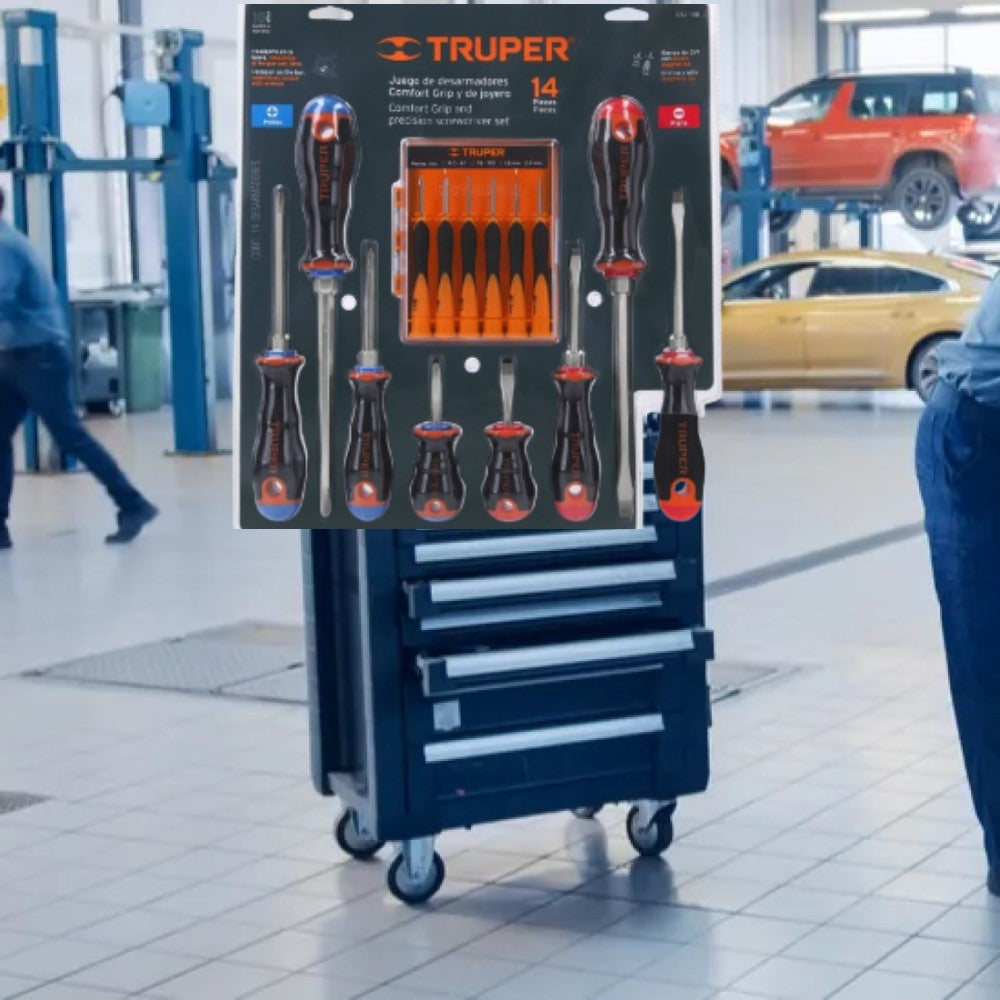Juego de 8 desarmadores de mecanico y 6 de joyero, mango Comfort Grip.