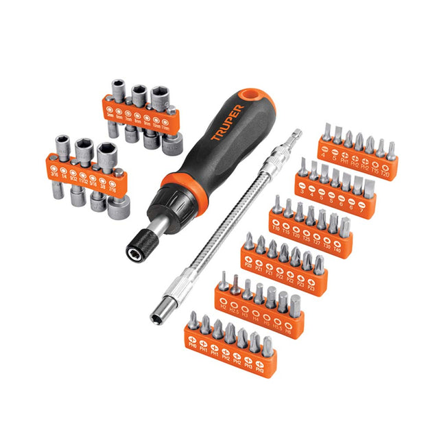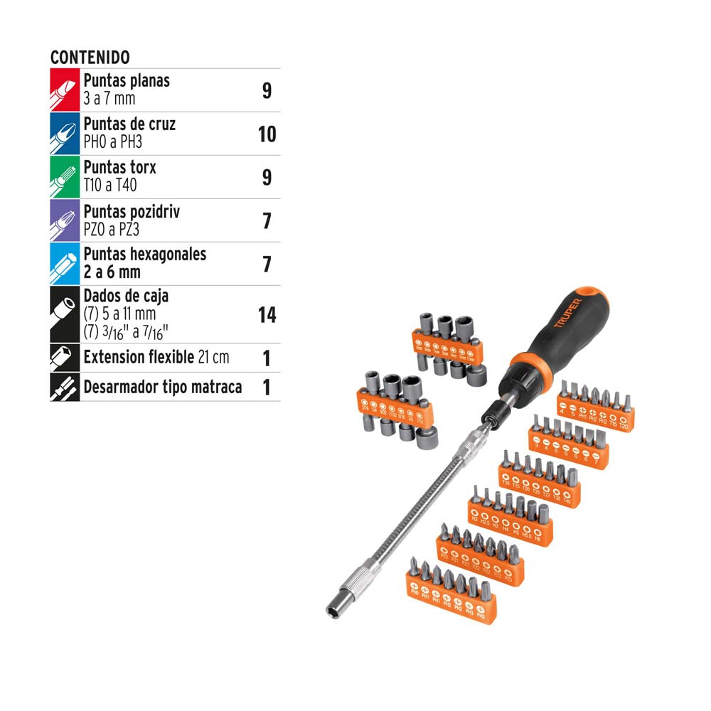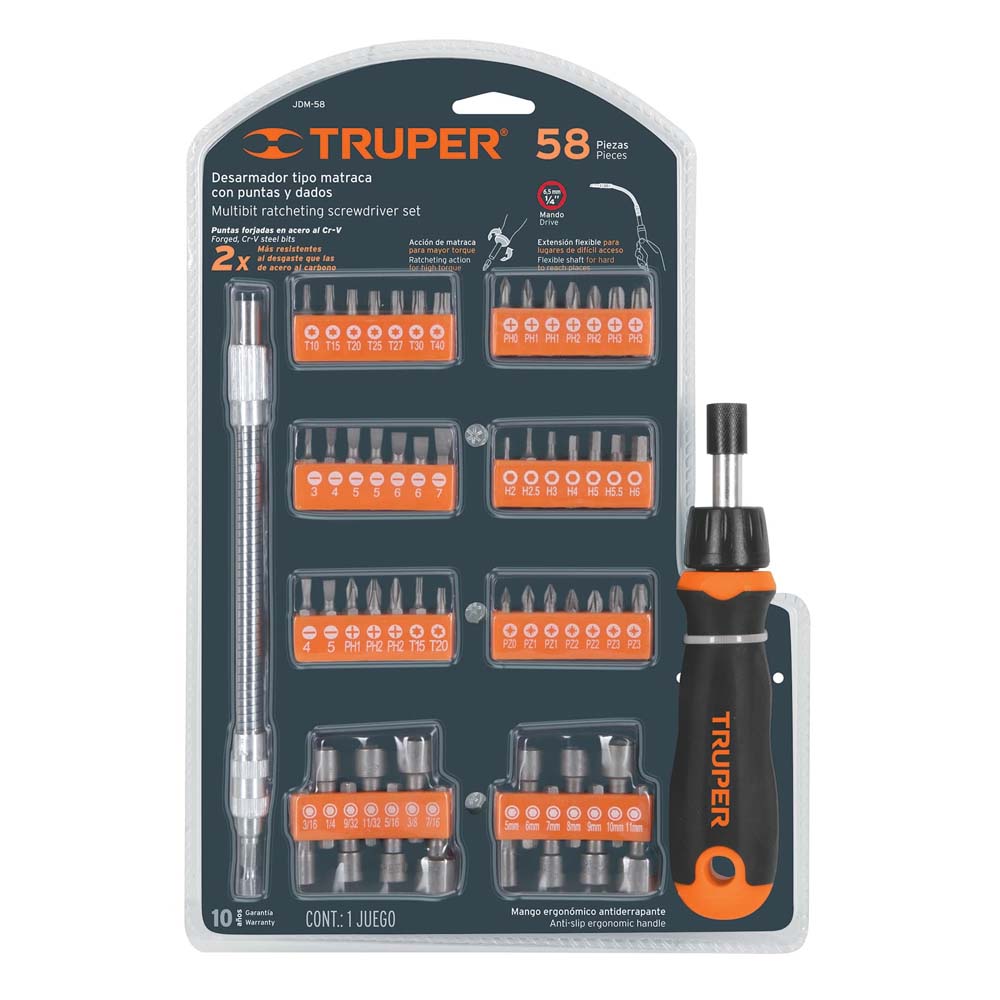Desarmador matraca con 42 puntas y 14 daddos con extension 18220 Truper JDM-58