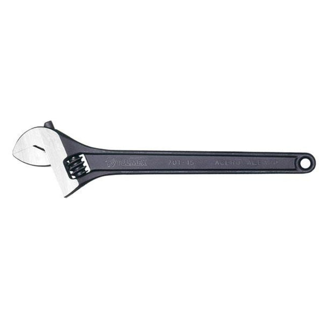 La Llave ajustable pavonada de 15 pulgadas modelo 701-15P de Klein Tools es una herramienta robusta y confiable, disenada para ofrecer un rendimiento superior en aplicaciones industriales y profesionales. Fabricada en acero al alto carbono forjado en caliente y tratada termicamente, esta llave garantiza una dureza de 44-48 RC, proporcionando un equilibrio optimo entre durabilidad y tenacidad. Su mordaza ancha permite una sujecion firme sin danar las tuercas o cabezas de los tornillos, y su tornillo sin fin cromado asegura ajustes precisos y suaves.