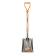 Pala cuadrada modelo Español Clasico con puño “Y” Comfort Grip, mango de madera de fresno con acabado enlacado, cabeza de acero al carbono con hombros rolados atras. Ideal para cavar, remover tierra o trasladar materiales en jardin o obra.