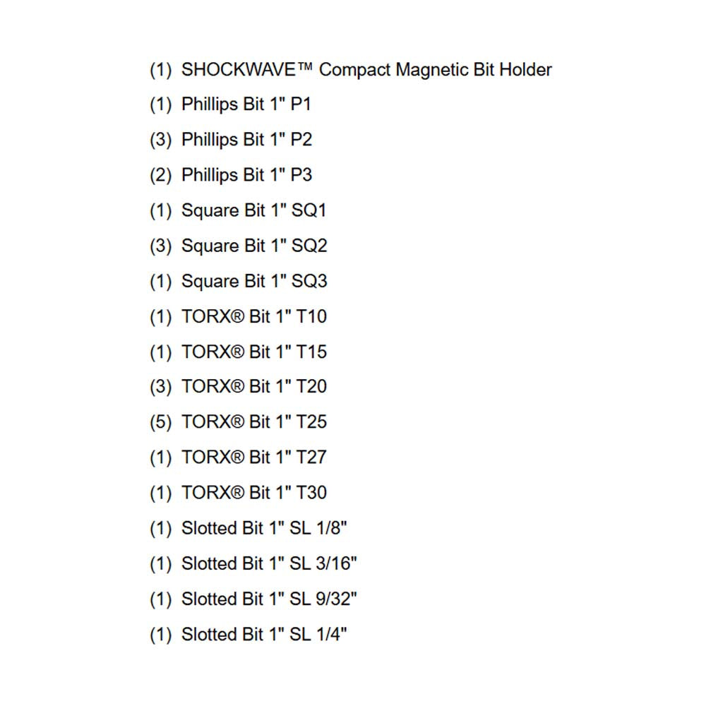 El juego de 22 piezas SHOCKWAVE de Milwaukee esta diseñado para resistir el abuso de los atornilladores de impacto. Cada punta cuenta con una zona de torsion (Shockzone) que absorbe el torque y previene la rotura. Las puntas Wear Guard Tip estan endurecidas para una vida util hasta 50 veces mayor. El estuche compacto mantiene todas las puntas organizadas y listas para el trabajo.