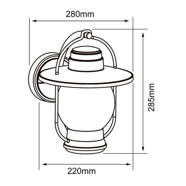 Ilumina tus espacios exteriores costeros con este robusto farol arbotante. Disenado especificamente para resistir las condiciones ambientales exigentes de la costa, cuenta con una base estandar E27 para una facil instalacion de la bombilla de tu eleccion. Su clasificacion IP44 garantiza proteccion contra salpicaduras de agua y polvo, asegurando una iluminacion confiable y duradera. El elegante terminado en negro anade un toque de sofisticacion a cualquier fachada