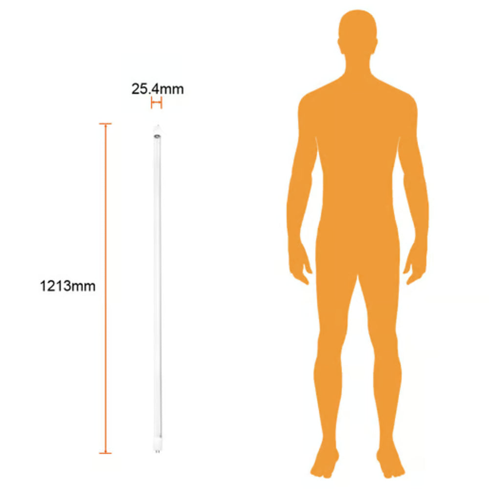 Renueva tu iluminacion con el kit de 18 tubos LED T8 (Ogma II) de Tecnolite. Cada tubo consume 18W (sustituto de 36W fluorescente), mide 120 cm y tiene cubierta transparente para maxima luminosidad. Ofrecen luz blanca neutra (4000K) y conexion en ambos lados (requiere eliminacion de balastro).