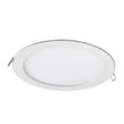 Luminario tipo downlight ultradelgado para empotrar en plafon con lampara LED tipo SMD y driver integrado; cuerpo circular fabricado en aluminio con acabado color niquel; luz Blanco Frio 6000 K